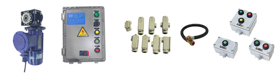 防爆快速电机、防爆型控制箱、防爆型安全光电、防爆型开关门按钮盒、防爆型线管、防爆型线名与转接防爆头等全系列防爆配件。